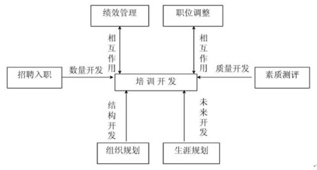 越来越多的企业认识到,培训与人才开发是密不可分的,培训的一大本质特点就是开发功能。培训管理就是通过一系列的手段挖掘员工潜能,提供员工绩效,缩小员工当前知识技能与所在岗位能力素质要求之间的差距,最终提升组织绩效的过程。培训管理在人力资源管理体系中的作用,如下图所示: